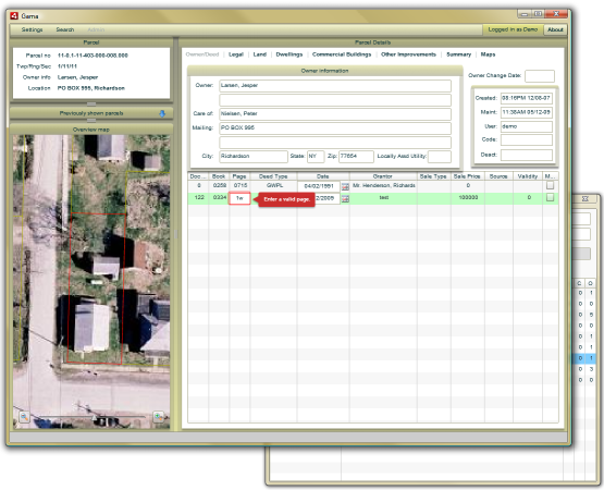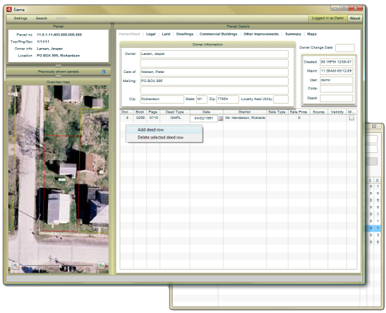 Whenever a mapper splits or combines a parcel, the corresponding record in the mass appraisal database is created or deleted. Whenever parcels are combined, the improvements on those parcels are automatically transferred to the resulting property record. If improvement locations are represented on the map, these improvements are automatically assigned to the appropriate record whenever a split occurs. This process integration reduces error while dramatically increasing worker efficiency.